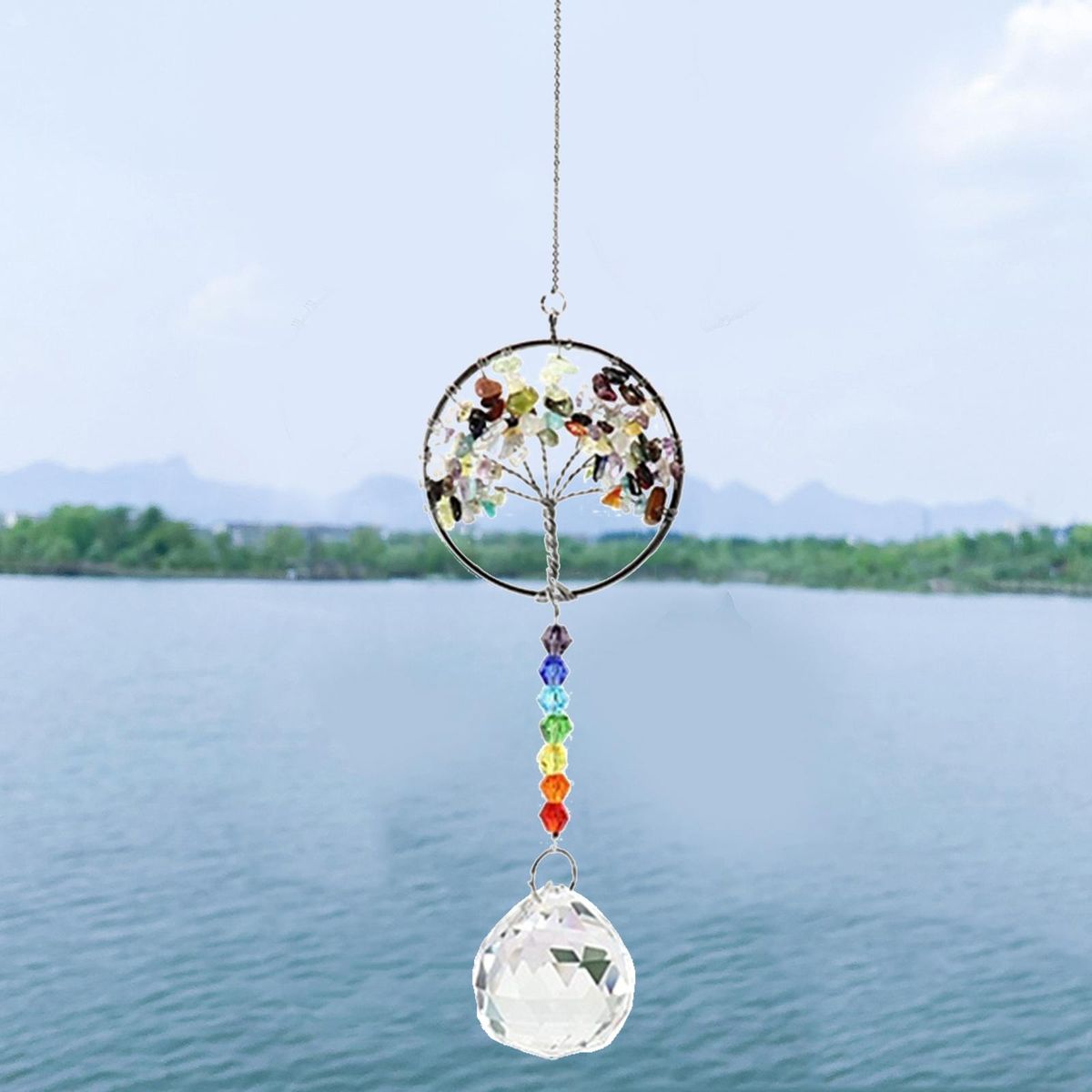 Hanging Crystal : optical crystal , clear and sparkling. They will hardly or lose their sparkly look. The includes crystal ball + colorful tree of life + colorful beads chain.