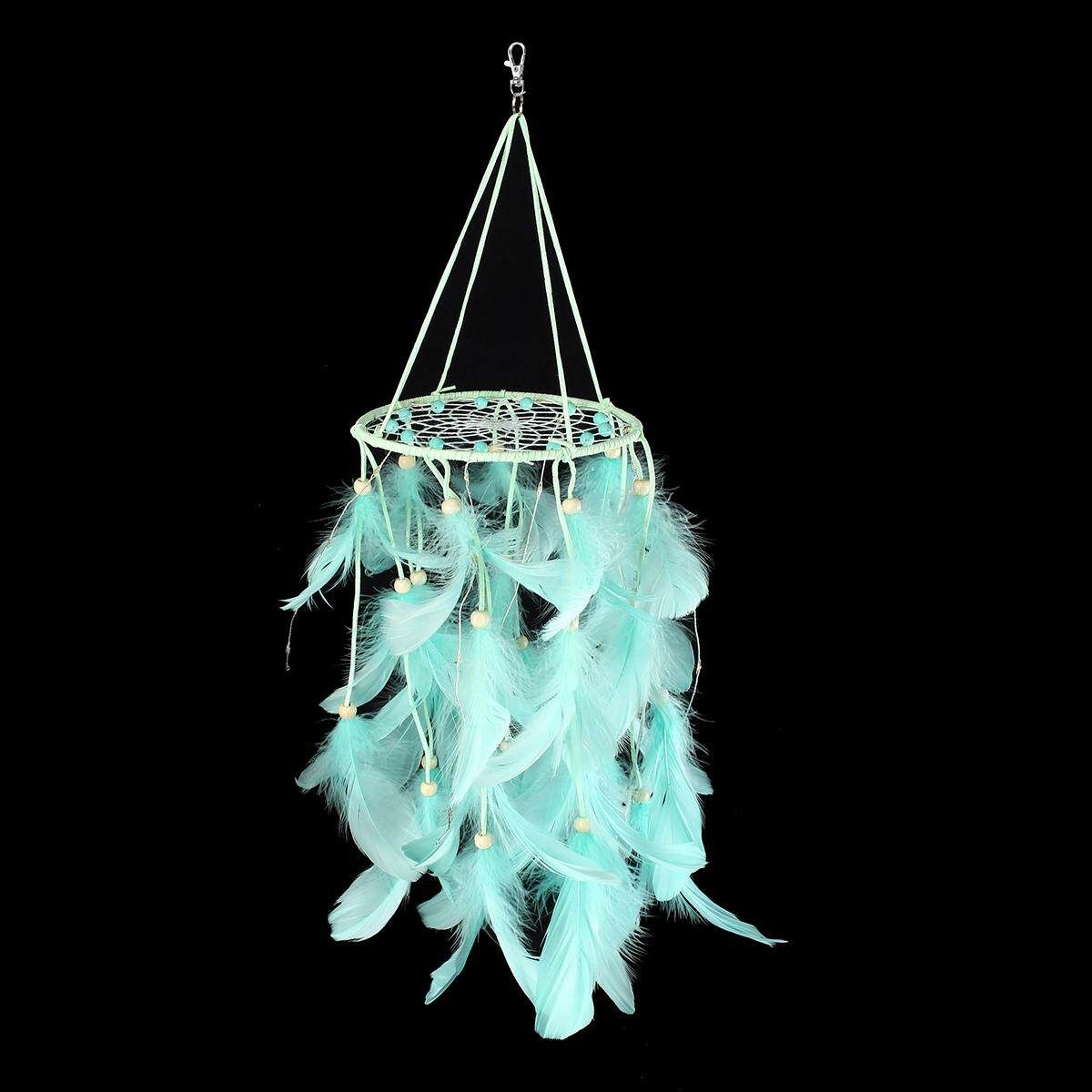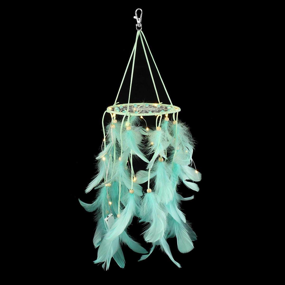 LED Dream Catcher Green/Blue Feather Chandelier Ornaments Handmade Indian Wall Decoration for Wall Decor Hanging Home Decor 25.6 inch