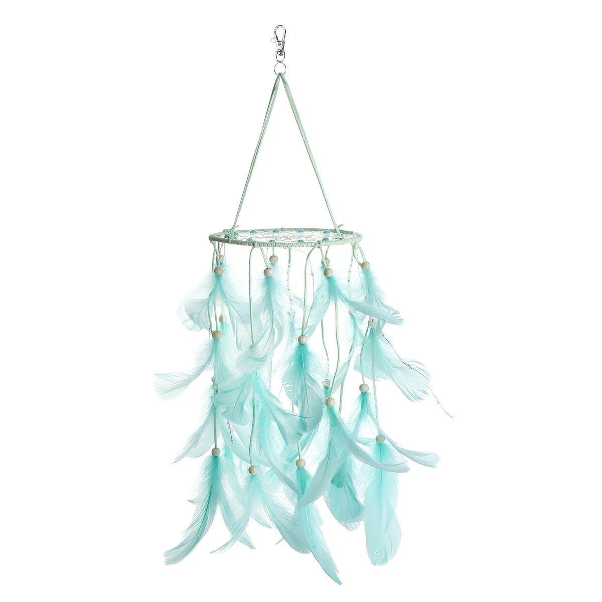 LED Dream Catcher Green/Blue Feather Chandelier Ornaments Handmade Indian Wall Decoration for Wall Decor Hanging Home Decor 25.6 inch