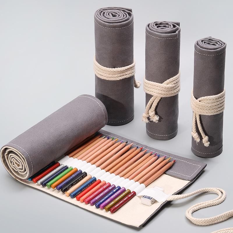 Buy Handmade gray canvas art pen curtain 12 24 36 48 72 holes large-capacity pencil roll bag color lead sketch stationery bag 72 holes - gray in Nigeria