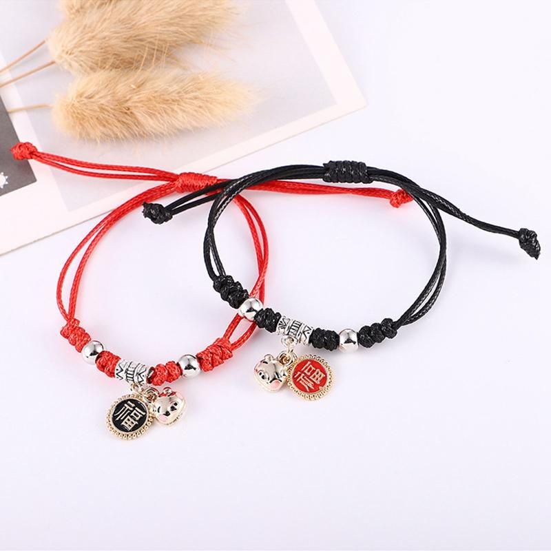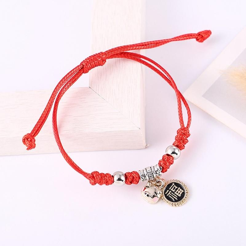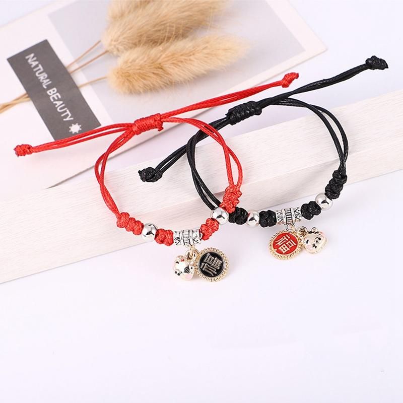 Detailed Information About The Product:Zodiac pig couple red rope woven bracelet