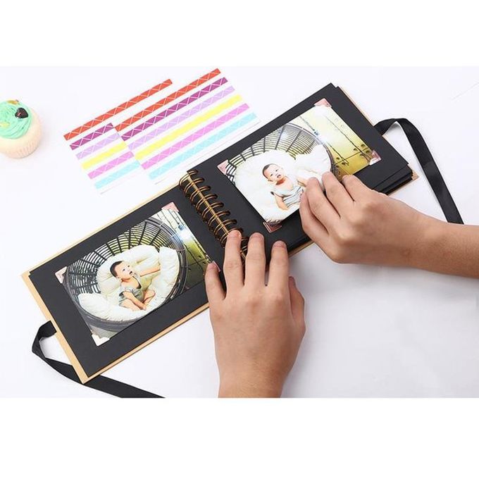 Type A-30 Pages DIY Scrapbook Material: Black paper Color:Yellow/Black Shell Size: approx.215x150mm/8.47x5.91inch Inside Page Size: approx.205x140mm/8.07x5.52inch Number of pages in the text: 30 Pages