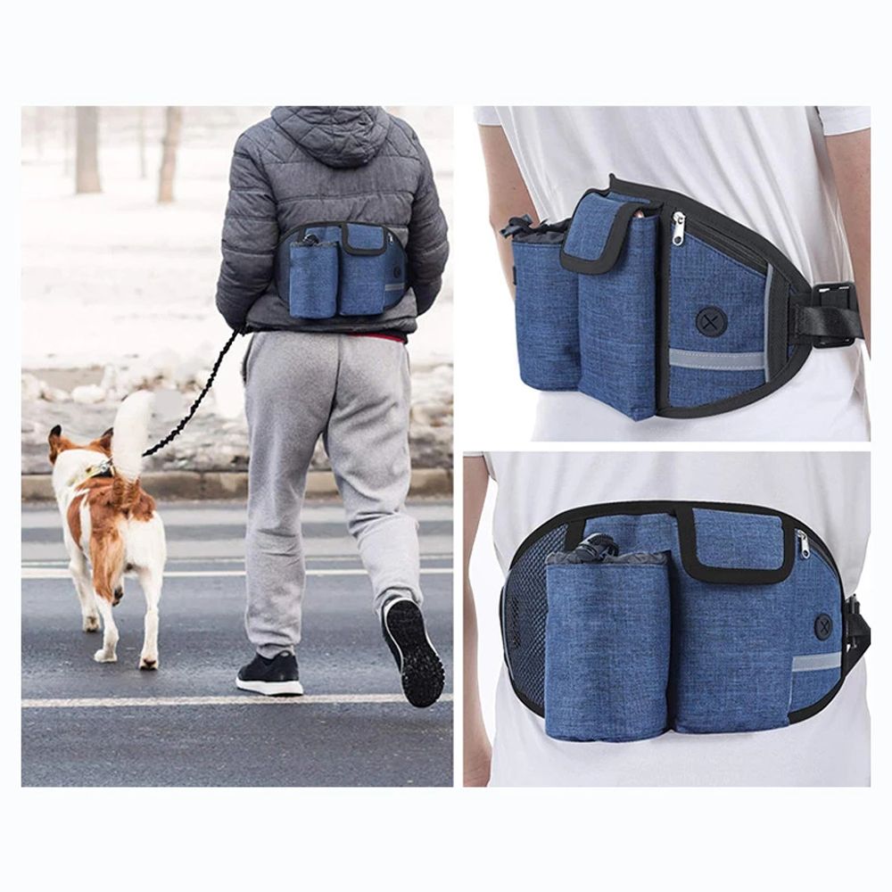 Hands Free Dog Running Waist Belt Bungee Dog Leash with Multi Pouches