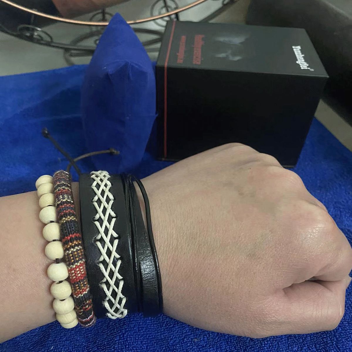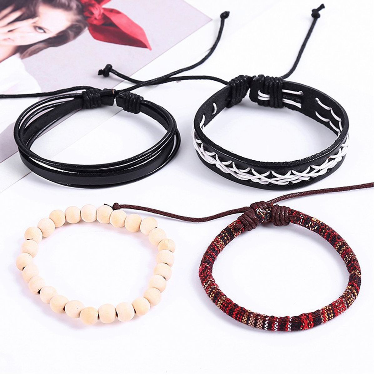 Handwoven leather and twine bracelet.An example of artisan craftsmanship. Supplied as a set of individual bracelets.Suitable for a new generation of literary and artistic young couples, suitable for various occasions, and a good gift.