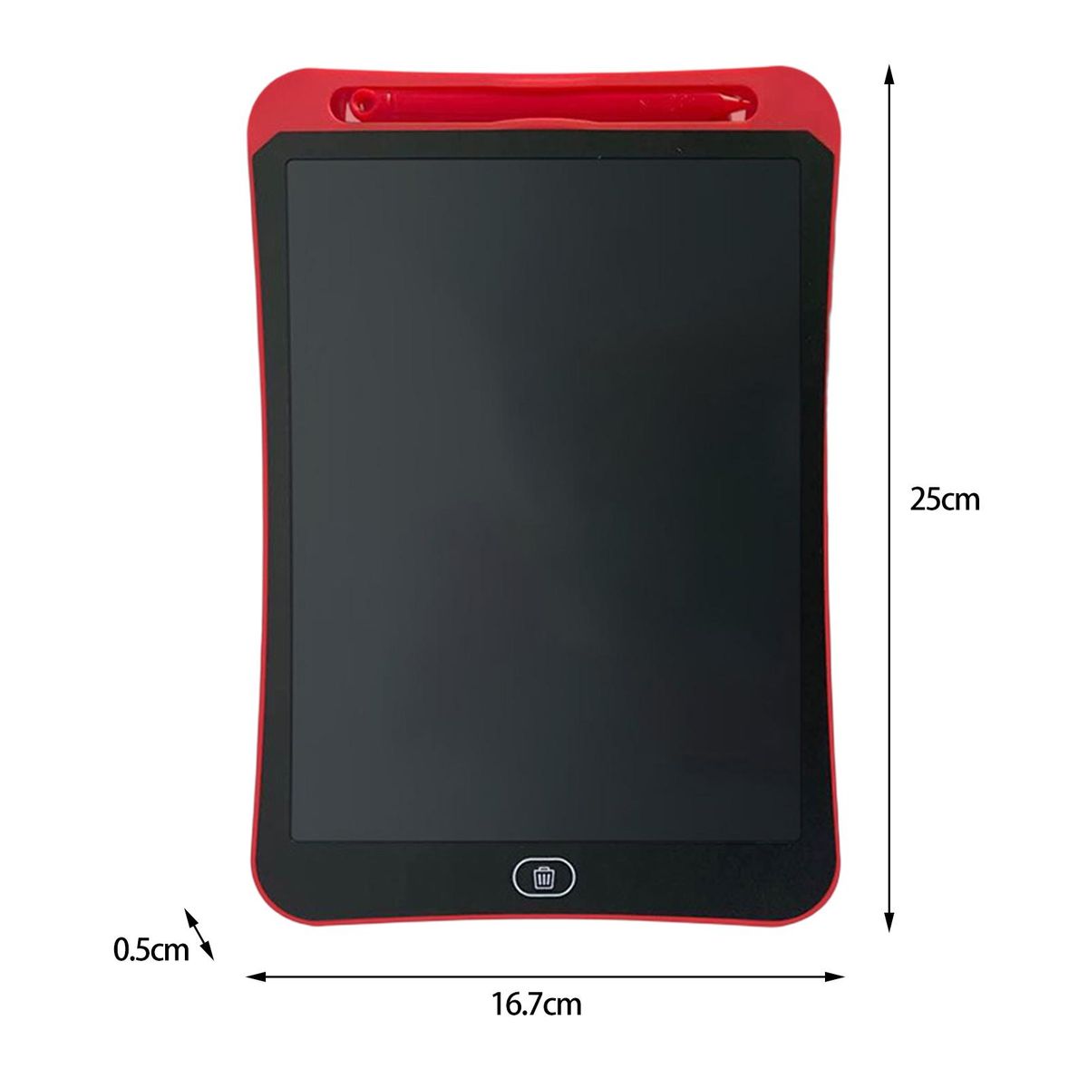 The length of this product is 25cm, the width is 16.7cm and the height is 0.5cm. This writing tablet is practical, which can allow your kid to draw at any time and any where to help develop imagination.