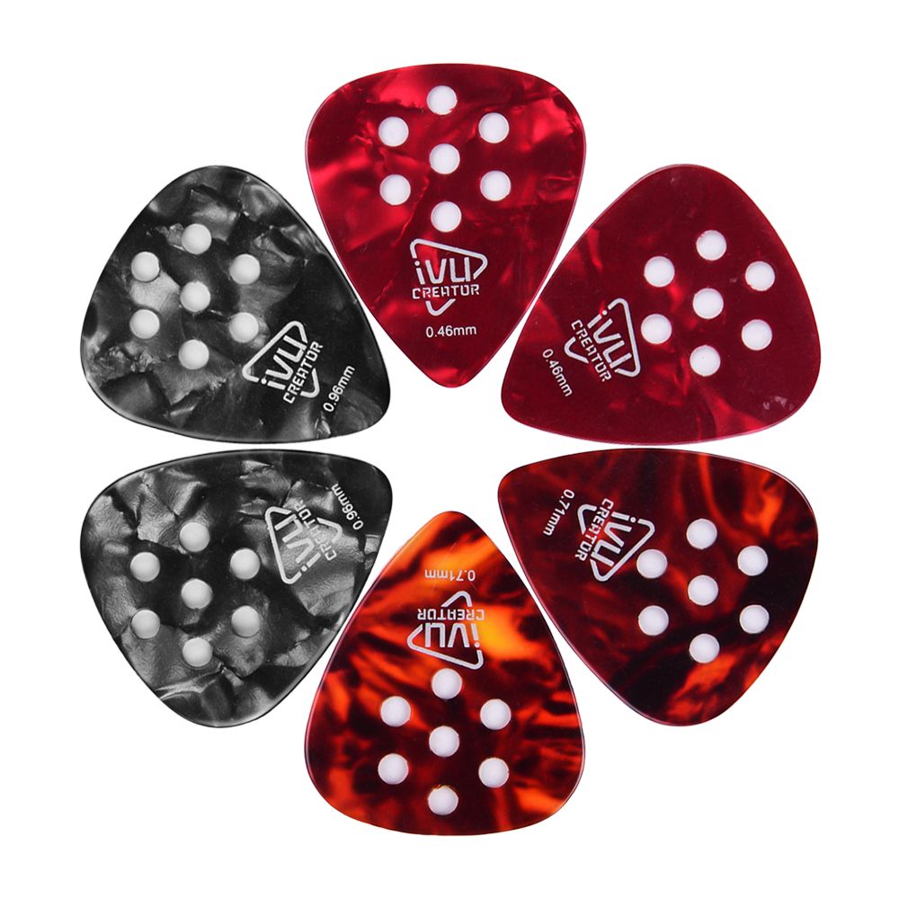 Guitar pick thickness: thin 0.46mm * 2pcs, medium 0.71mm * 2pcs, heavy 0.96mm * 2pcs.