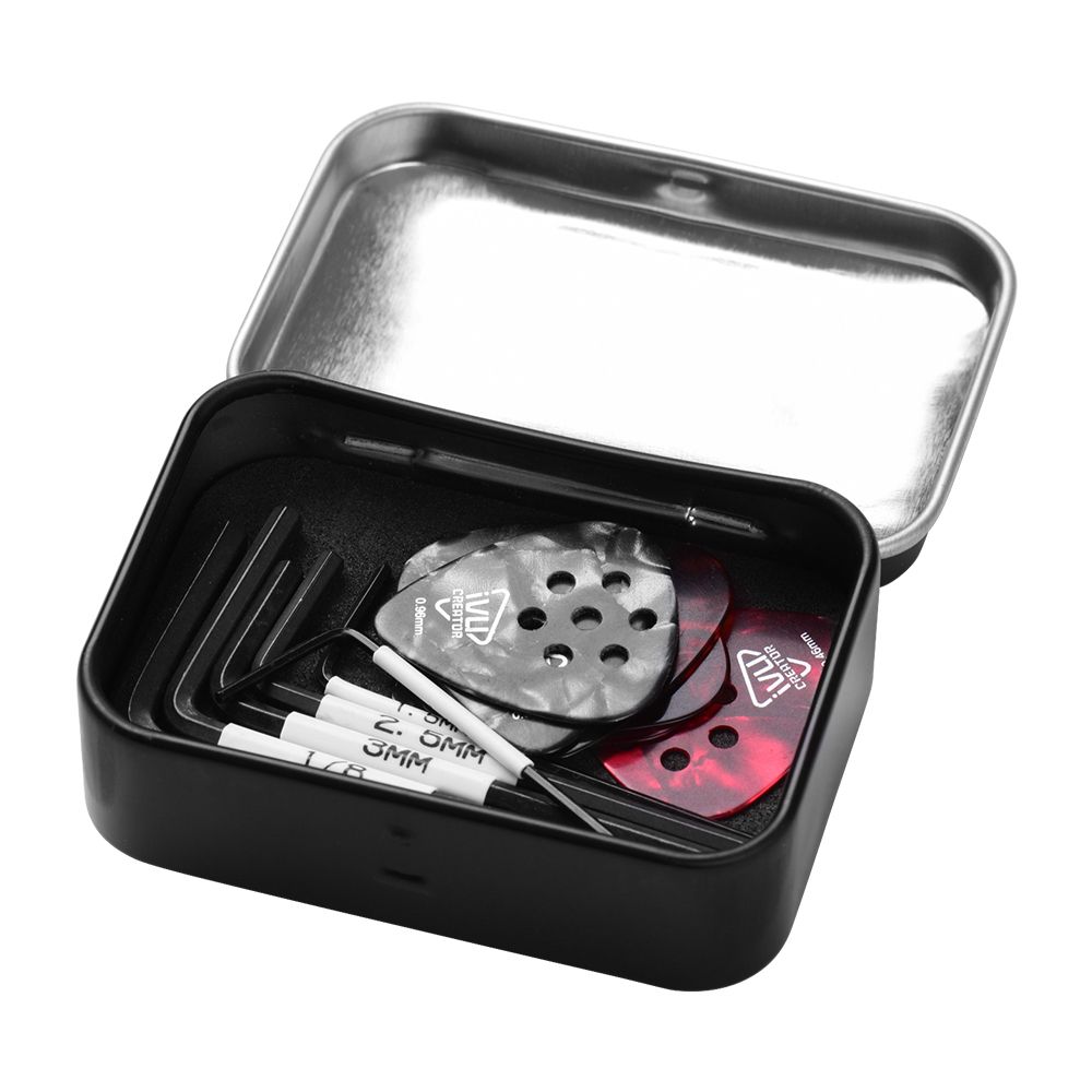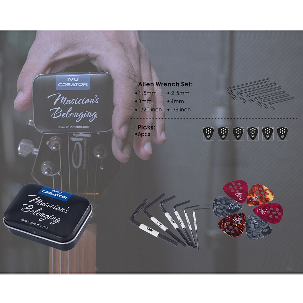 A useful and handy tool kit for guitarists, including 6pcs Allen wrenches and 6pcs picks.