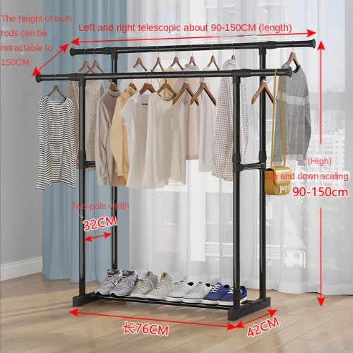 Extendable Double Pole Cloth Hanger For Organization - 2 Layers