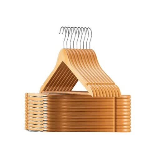 Lightweight, yet incredibly strong natural hardwood clothes hangers efficiently hang winter coats, suits, and jackets with ease.