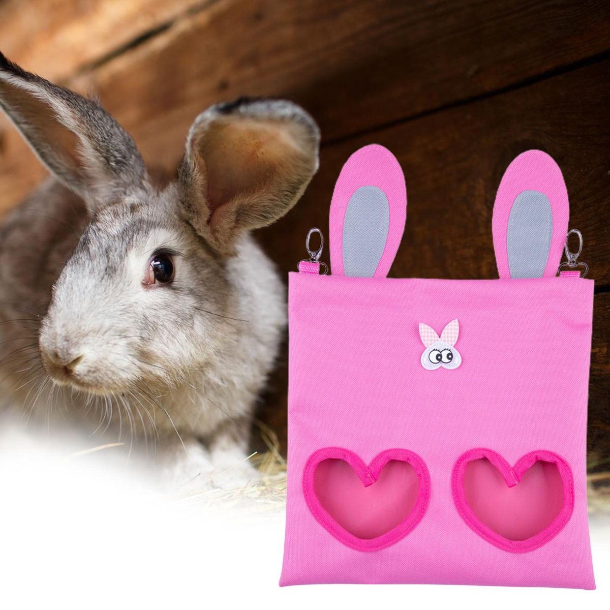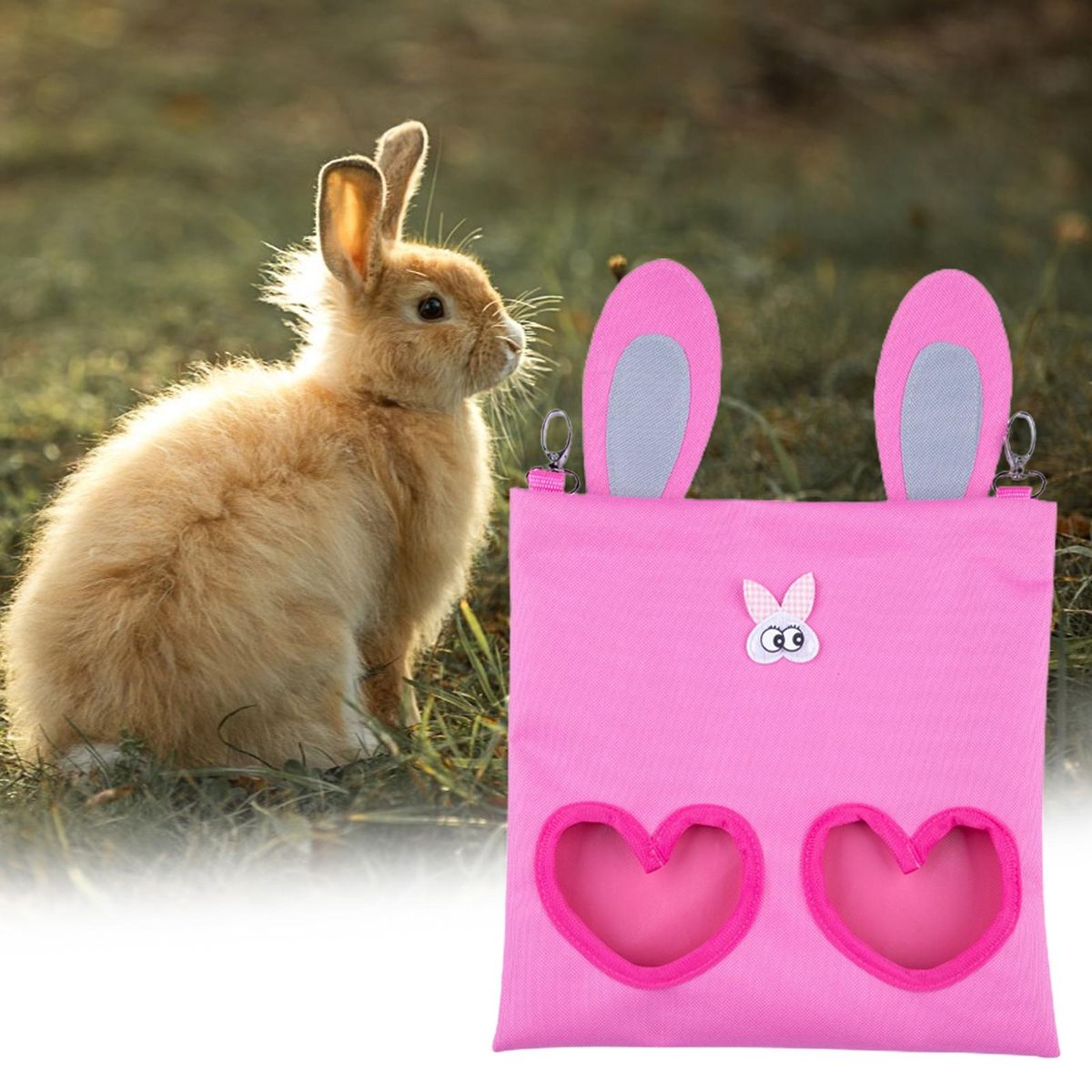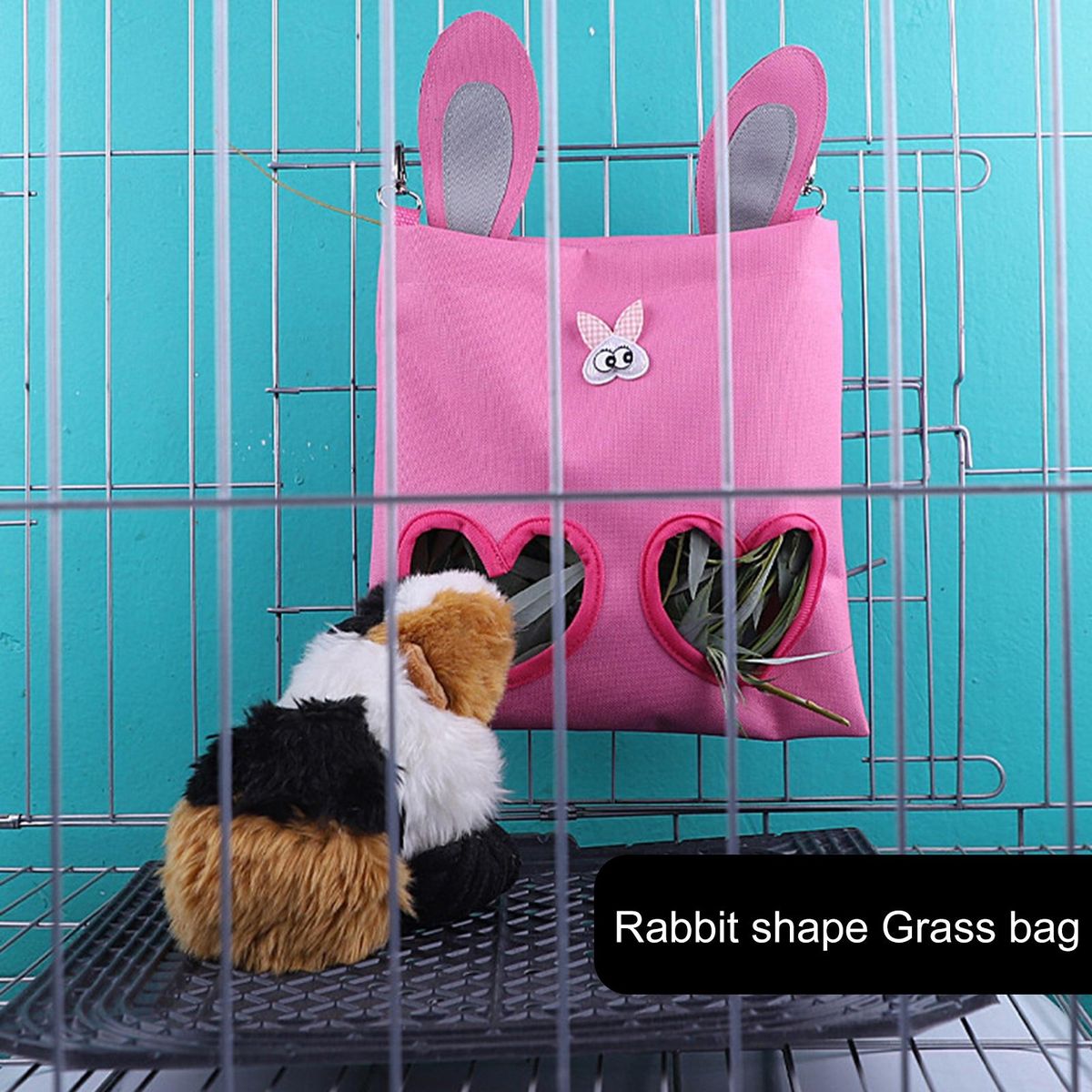 Our dried grass bag, the perfect solution for keeping your small pets well-fed and their cages clean. this convenient feeding bag features two windows, ensuring that your pets stay tidy while eating and minimizing waste. the metal hook allows for easy hanging, making it suitable for most pet cages or any desired location. crafted from high-quality material, this bag is fade-resistant, tear-resistant, and bite-resistant, ensuring durability and longevity. it can hold a sufficient amount of dried grass to ensure your pets always have enough food. when not in use, simply fold the bag for easy storage, taking up minimal space. this versatile bag is specially designed for storing dried grass and feeding herbivorous animals such as guinea pigs, hamsters, rabbits, hedgehogs, and pet pigs. don't miss out on this excellent bag for pet feeding!