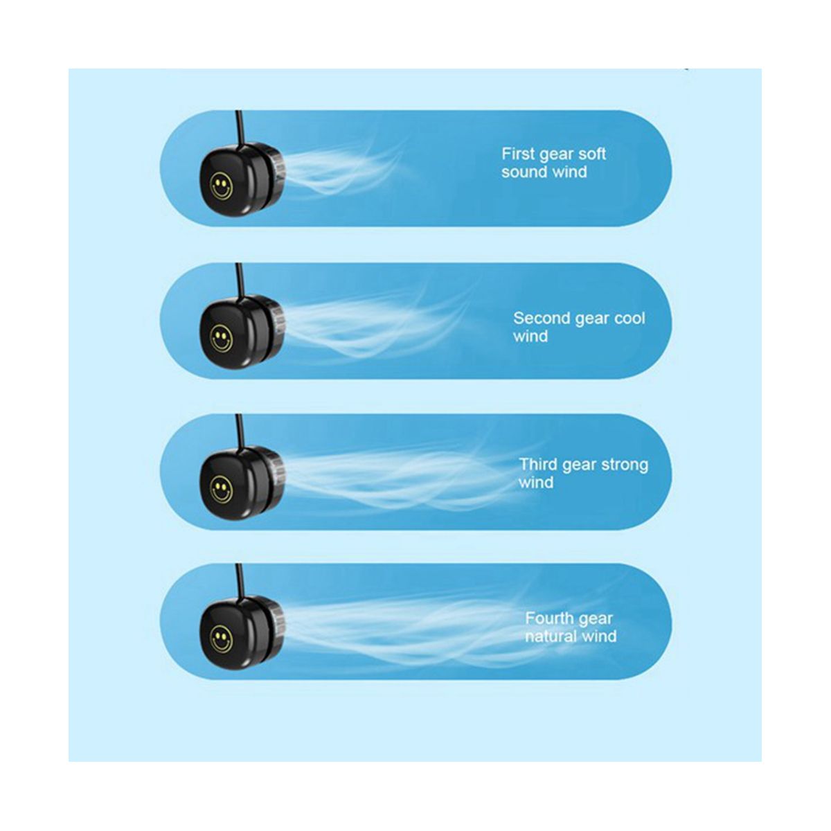 Safe and Convenient -- upgraded less neck fan which will not pinch hair or cut fingers ensuring safe use for long hair people children and the elderly compact size and easy flexibility to reduce the burden on the neck easy to carry anywhere