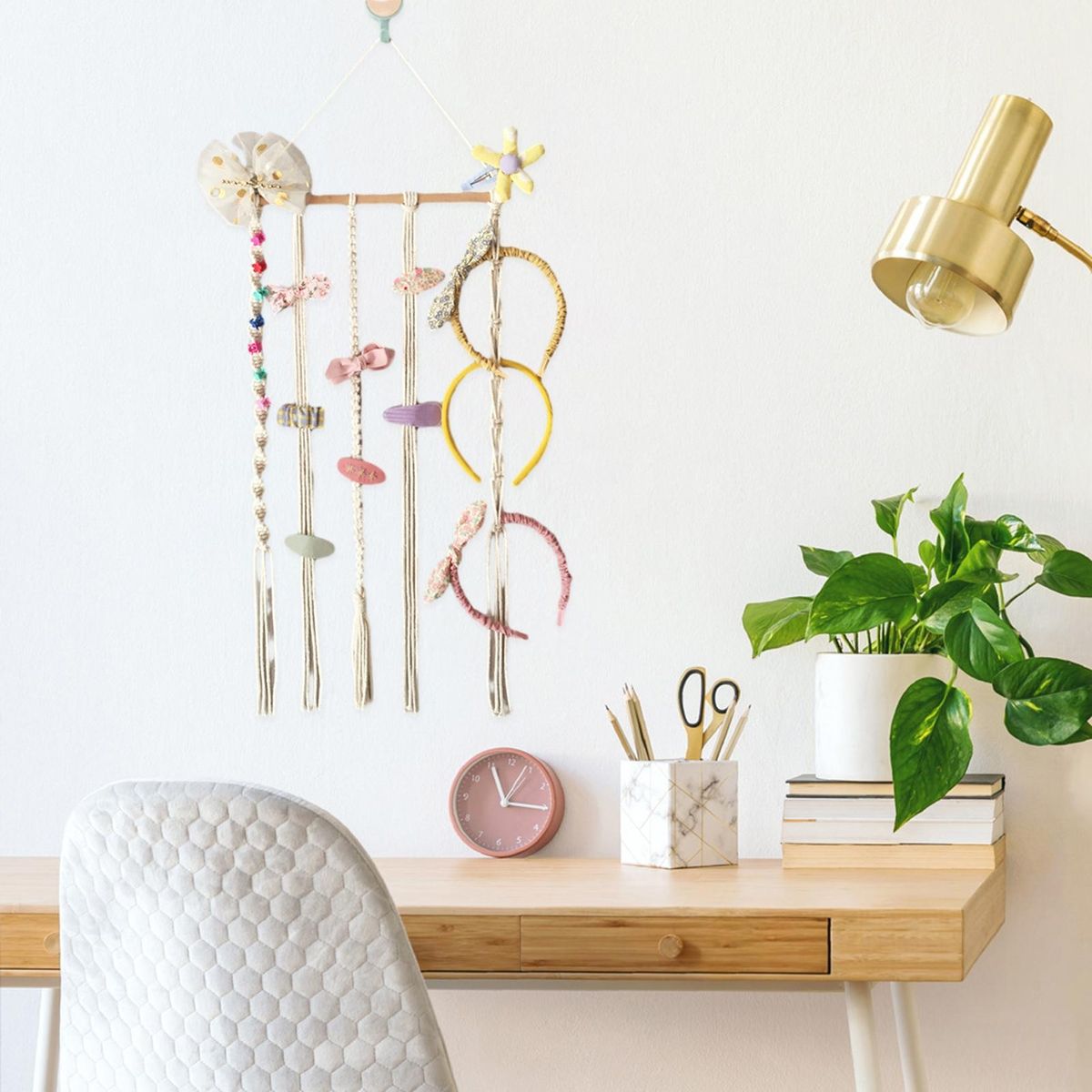 As it can display hair bows, clips, headbands, hair rings, and so on, this product is decorative for hanging it on the door or wall in bedroom.