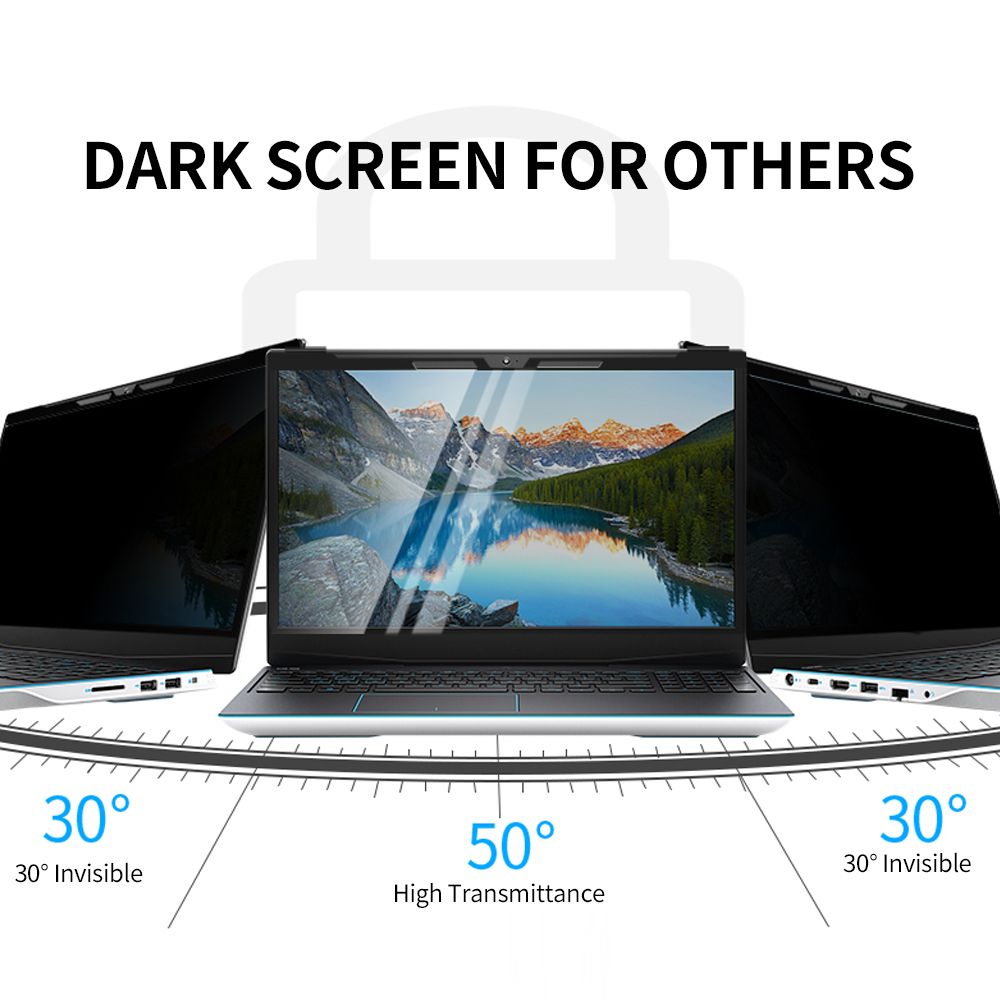 This Laptop Hanging Privacy Screen Filter is easy to install and high-transmittance at front side. Besides, it blocks UV to protect your eyes and relieve eye fatigue.