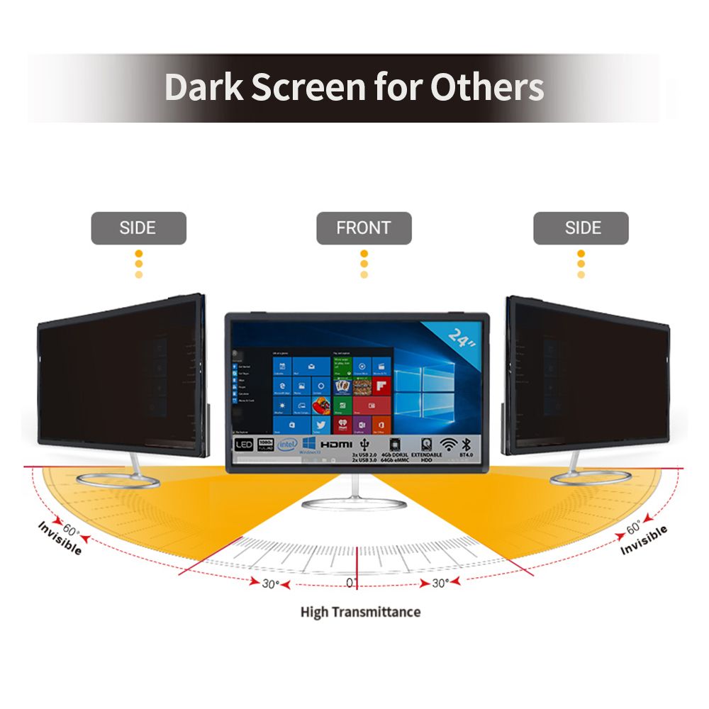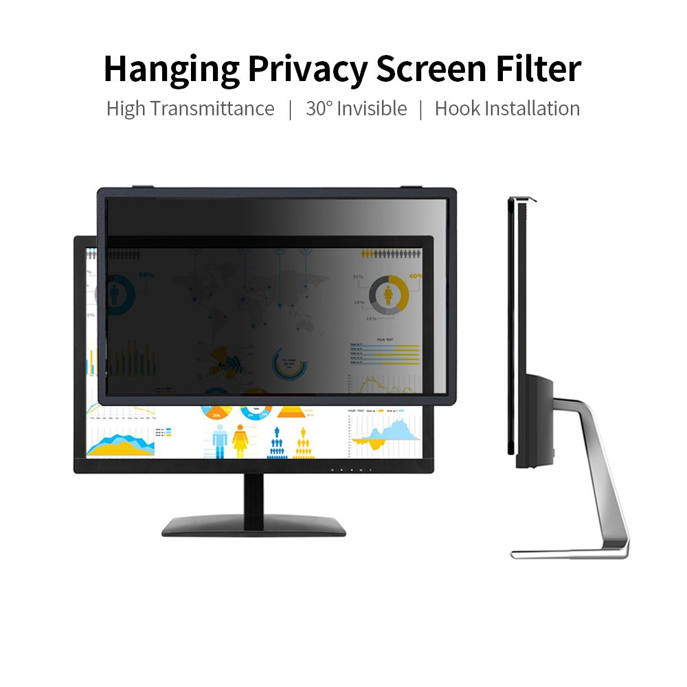 This Hanging Privacy Screen Filter is high-transmittance at front side and the screen gets darker or even invisible when looking from an angle ( ge;30 deg;). And it also blocks UV and suppresses reflection of light to protect your eyes and relieve eye fatigue to some extent.
