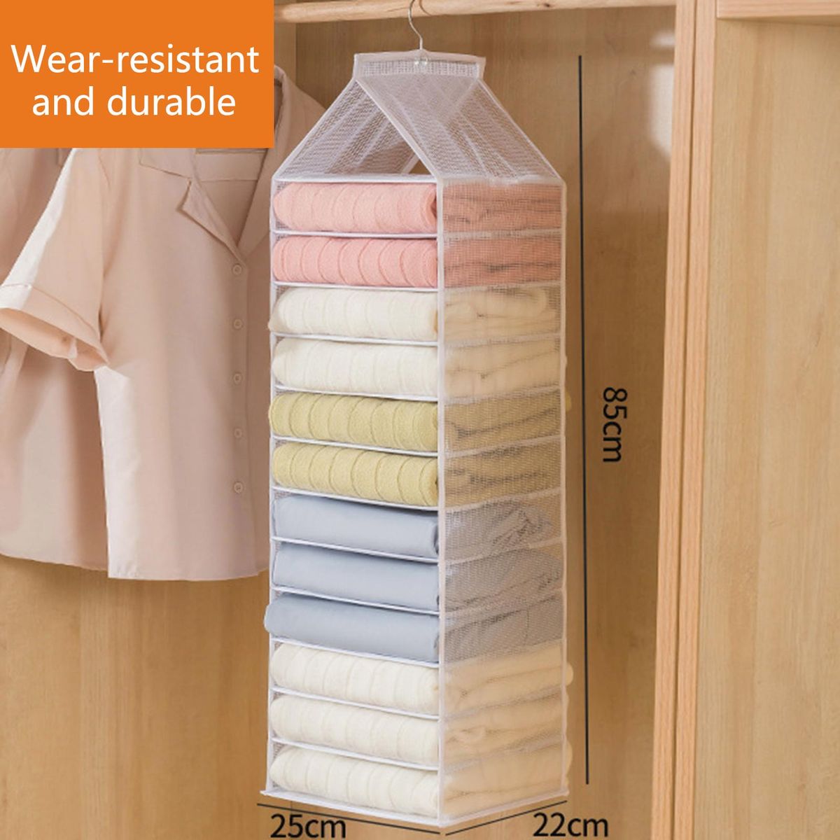 This clothes hanging bag features large capacity, which supports layered organization, keeps your closet more clean and tidy as well as save more space.