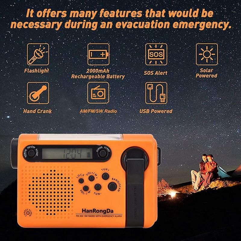 The compact size solar emergency radio is easy to carry as an emergency kit when traveling, camping, etc. Just add it to your backpack or car.