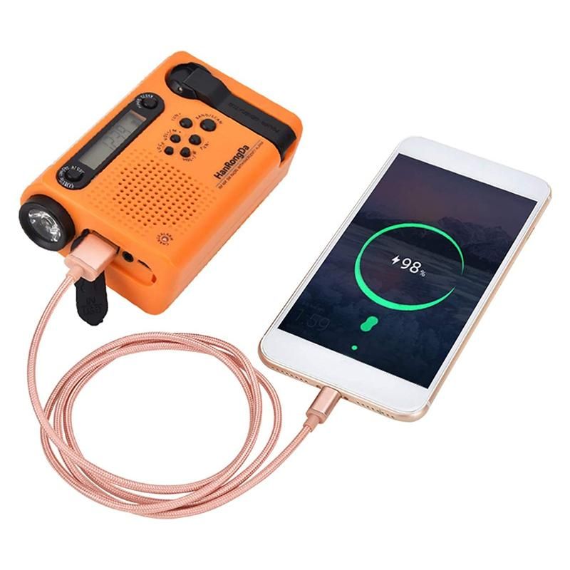 The radio can be charged via -USB cable (included), crank and solar panel, generate energy for emergency . No more worrying about outages.