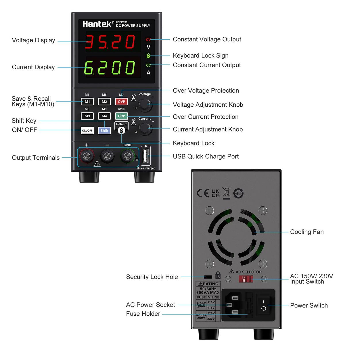 Buy Hantek HDP135V6 Digital Bench DC Power Supply Variable 35V 6A Adjustable Switching Regulated Power Supply CV CC with Data Storage, On/ Off Output, USB Quick Charge, Encoder Adjustment Knob in Nigeria