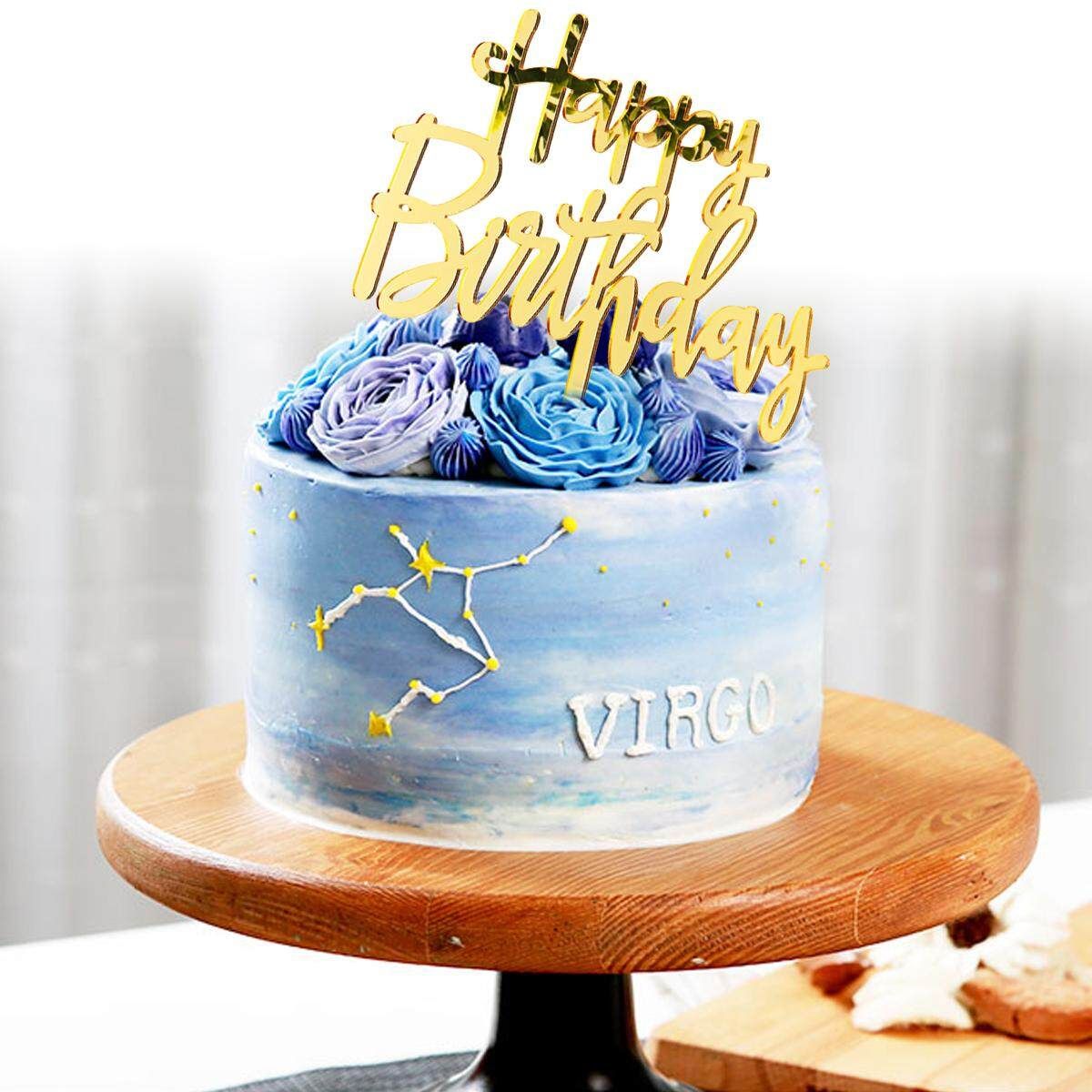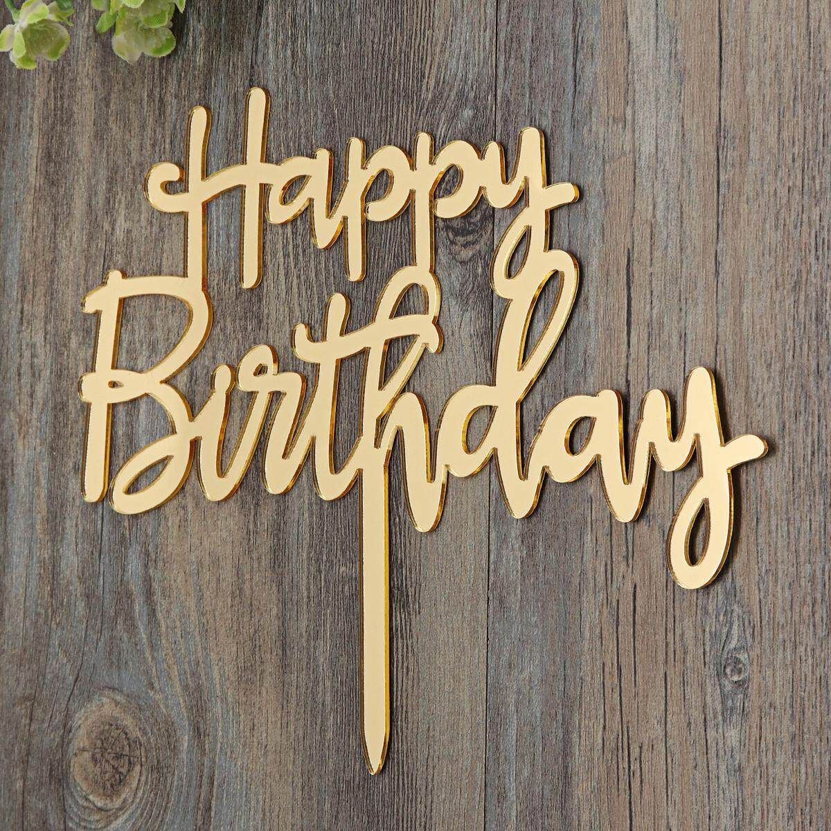 Acrylic Mirror Happy Birthday Birthday Cake Topper Gold Silver