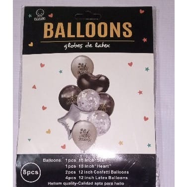 Buy Happy Birthday Inscibred Helium Air Confetti - Latex & Foil Balloons - Silver & Black in Nigeria