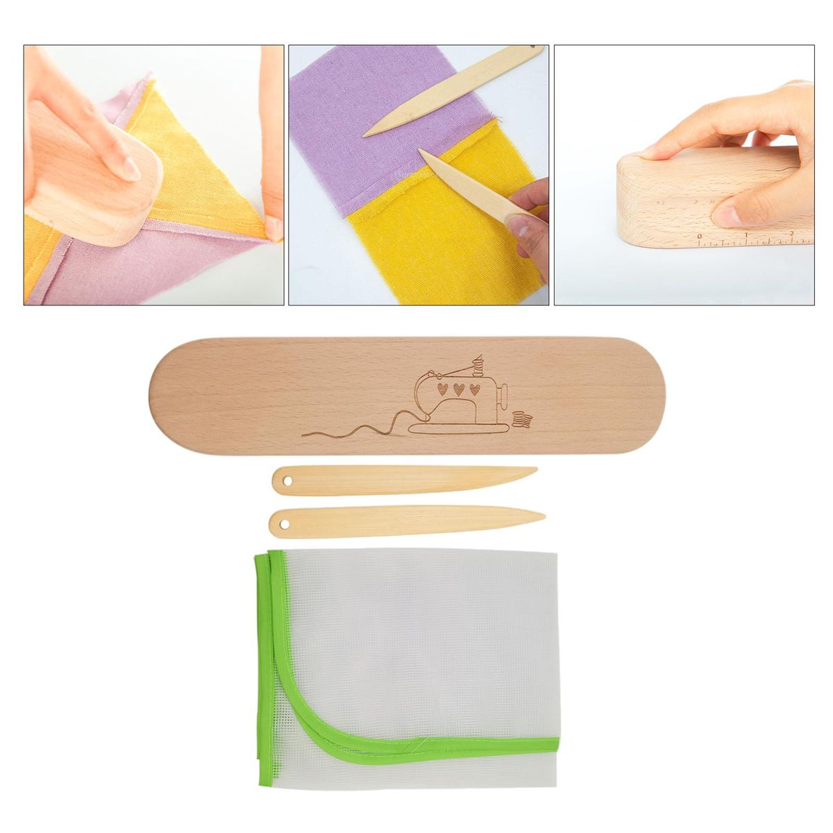 Easy to use. This tailor clapper is easy to use. Start by pressing the seams, folds or creases with a hot and steam. After lifting the , place the clapper on the seam, pleat or and press firmly for a while until the fabric cools. Since tailor clappers are made of wood, it absorbs moisture to create perfectly crisp, flat and pressed seams, folds or creases. You can leave the seam flat on one side or open.