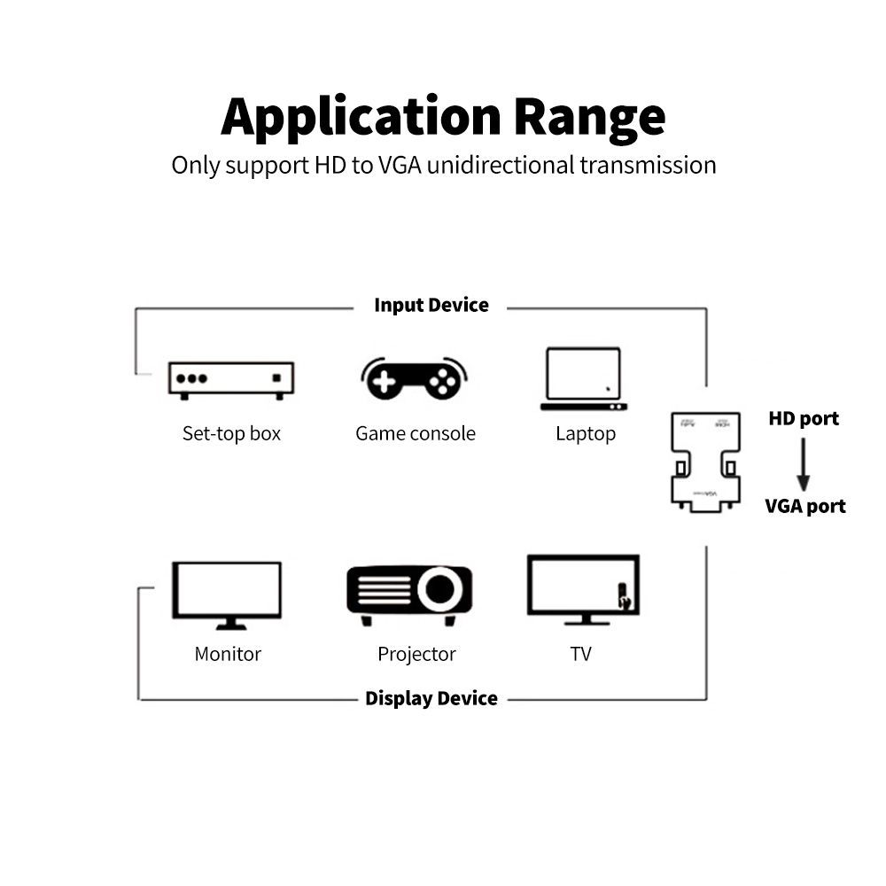 only supports HD to VGA unidirectional transmission,misuse can result in failure to transmit.