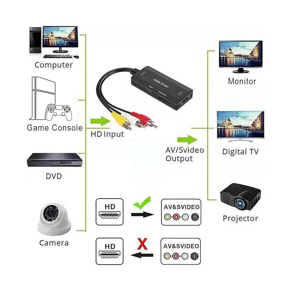 Buy HD to RCA Adapter 1080P HD to L/R CVBS Converter HD to AV Video Audio Adapter Support NTSC PAL Sync Output Audio&Video, Black in Nigeria