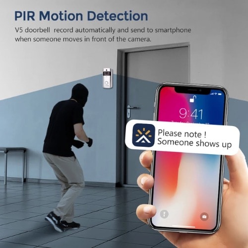 V5 WiFi Smart Home Video Doorbell Camera with Chime Night Vision PIR Motion Detection APP Control