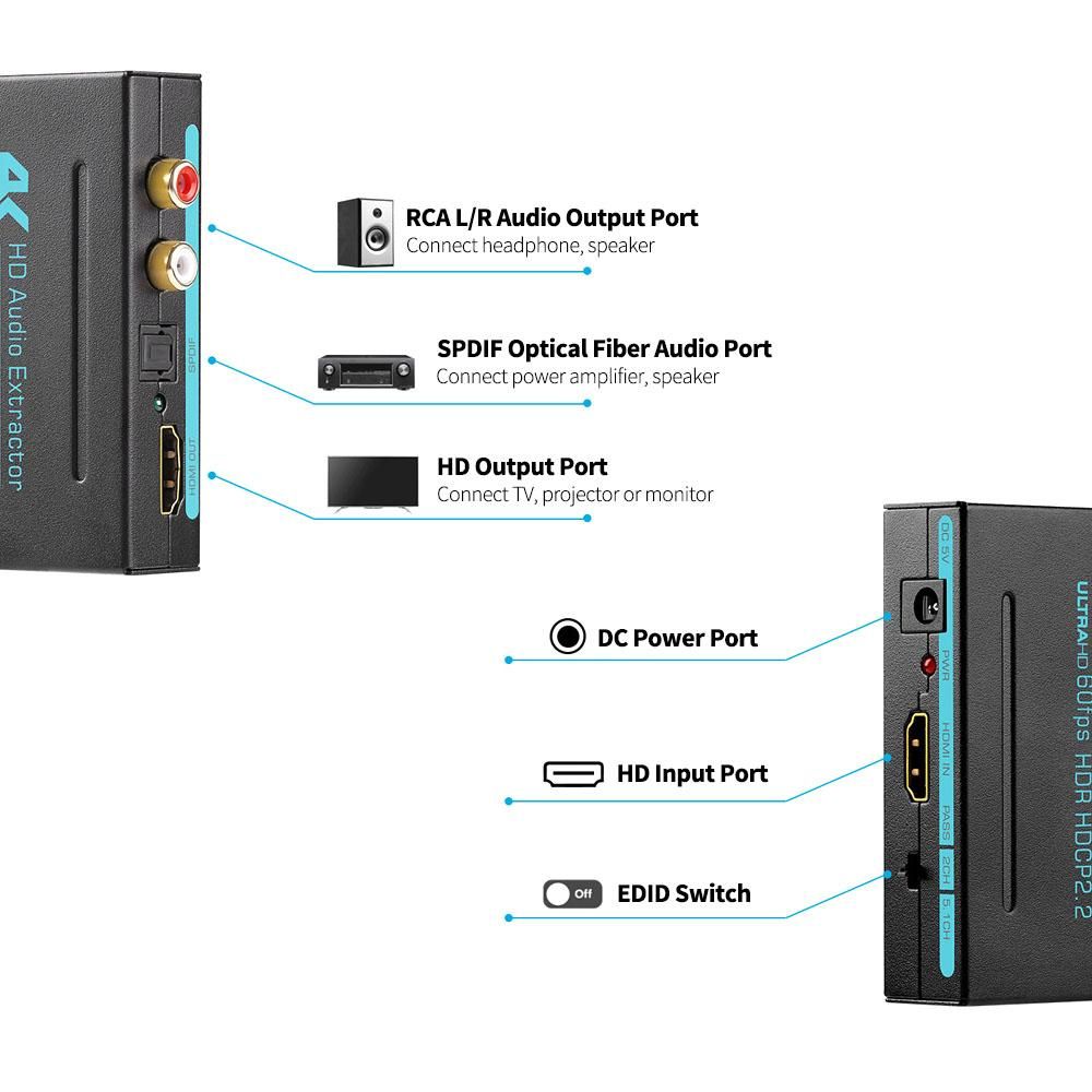 Buy HD2.0 Audio Extractor Maximum Support 4K Input Resolution HD+Optical Fiber+RCA Output Interfaces Lossless Audio Signal Black in Nigeria