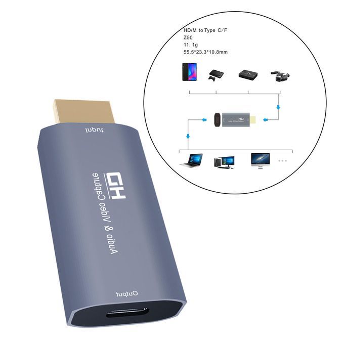 Function: The HD is connected to the audio and video input signal, and the USB-C interface is connected to a mobile phone or computer to realize high-definition acquisition, video recording, video live broadcast, etc.