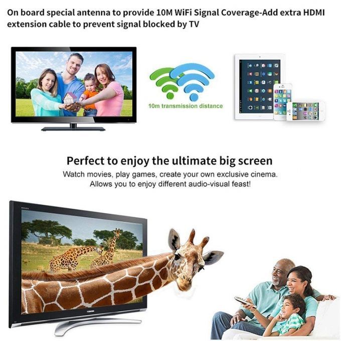 third step:1. Connect the product WiFi2. Open the URL 192.168.49.1 click the first icon, connect the home personal wifi, exit the interface after the success; 3. Apple phone / tablet pull the shortcut bar to open the mirror to achieve the same screen; Android phone to set the screenScreen Sharing or Media Out, Screen Mirroring, Projection Screen, WLAN Display, Wireless Display.Enjoy wireless display technology! Product Features① It is compatible with protocols such as EZAir, DLNA, WIFI Display and Miracast, and can only wirelessly project the devices (mobile phones, PCs, and tablet computers) onto devices such as TVs and projectors through WiFi to achieve the same platform display on the same screen.② support 720p / 1080p HDMI HD output also allows you to get rid of the traditional messy winding, easy to travel③ 10 meters wireless transmission distance, within 10 meters better interaction with customers, listeners, show wonderful speech④ support for online play and local play, video entertainment all over the network, Youku, Sohu, Tencent and other video playback, allowing you to Imagination on the big screen mass Internet resources. Colleagues can also support the same screen online, allowing you to surf the InternetSpecificationsCPU: AM8251 Operating System: Linux 3.0.8Same screen agreement: Anycast, Ezcast, DLNA, Miracast, AirplaySystem Support: IOS, MAC, ANDROID, WINDOWSSupport content: video, audio, pictures, documents, online video,Port HDMI: 1 * Male HDMI DC: 1 * Micro USB portSupport system: Android phones, Apple mobile phones, laptop support systems, tablet support systems, other devices HDMILanguages: MultilingualVideo Sync: Yes Online Upgrade: Yes Document Format: PDF / MS Word / MS Excel / MS / Powerpoint / Keynotes / Pages / NumberOnline Video: Youtube, Netflix, Hulu Plus, IDMB, Quickflix, Family On TV etc. Youku, Ikki ... Video Sync: Yes Online Upgrade: YesRemote Control: Supported by Phone / Labtop / Tablet PCVideo Format: AVI / DIVX / MKV / TS / DAT / MPG / MPEG1,2,4 / MP4 / RM / RMVB / WMVAudio format: MP1 / MP2 / MP3 / WMA / OGG / ADPCM-WAV / PCM-WAV / AACPicture format: JPEG / BMP