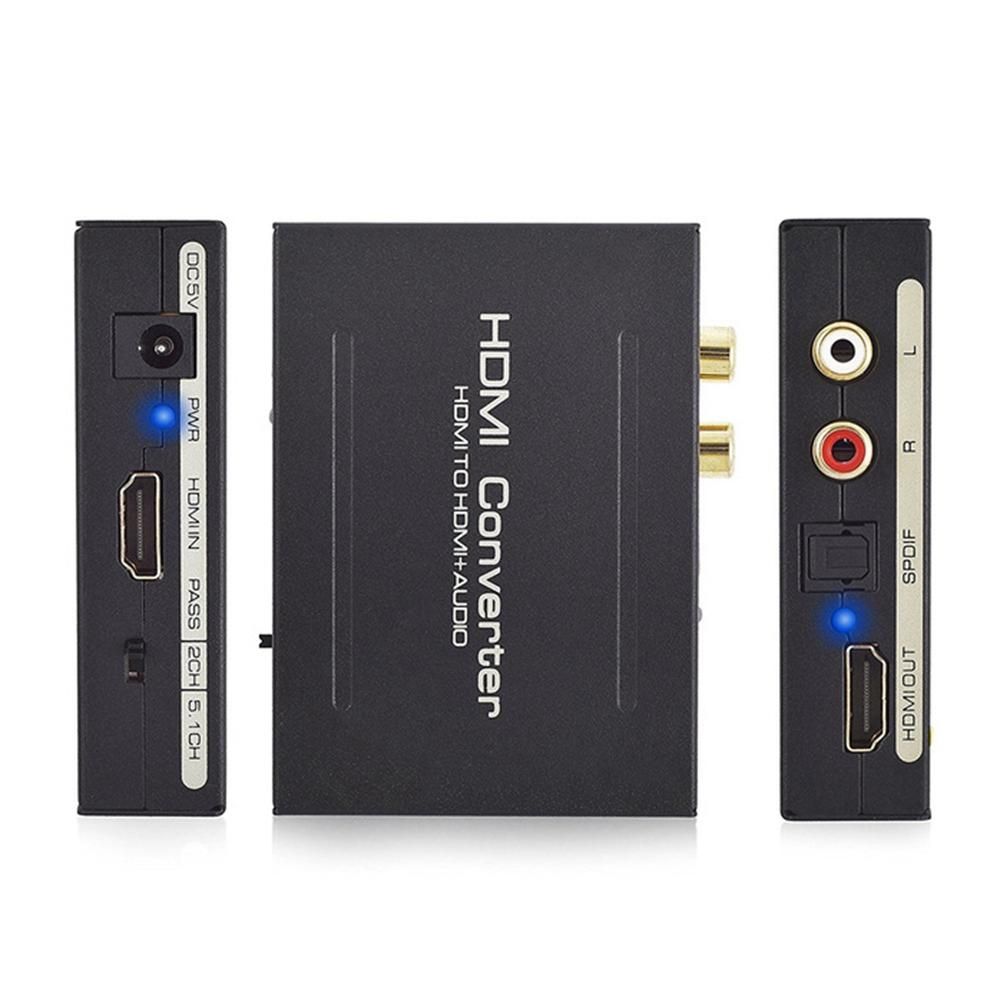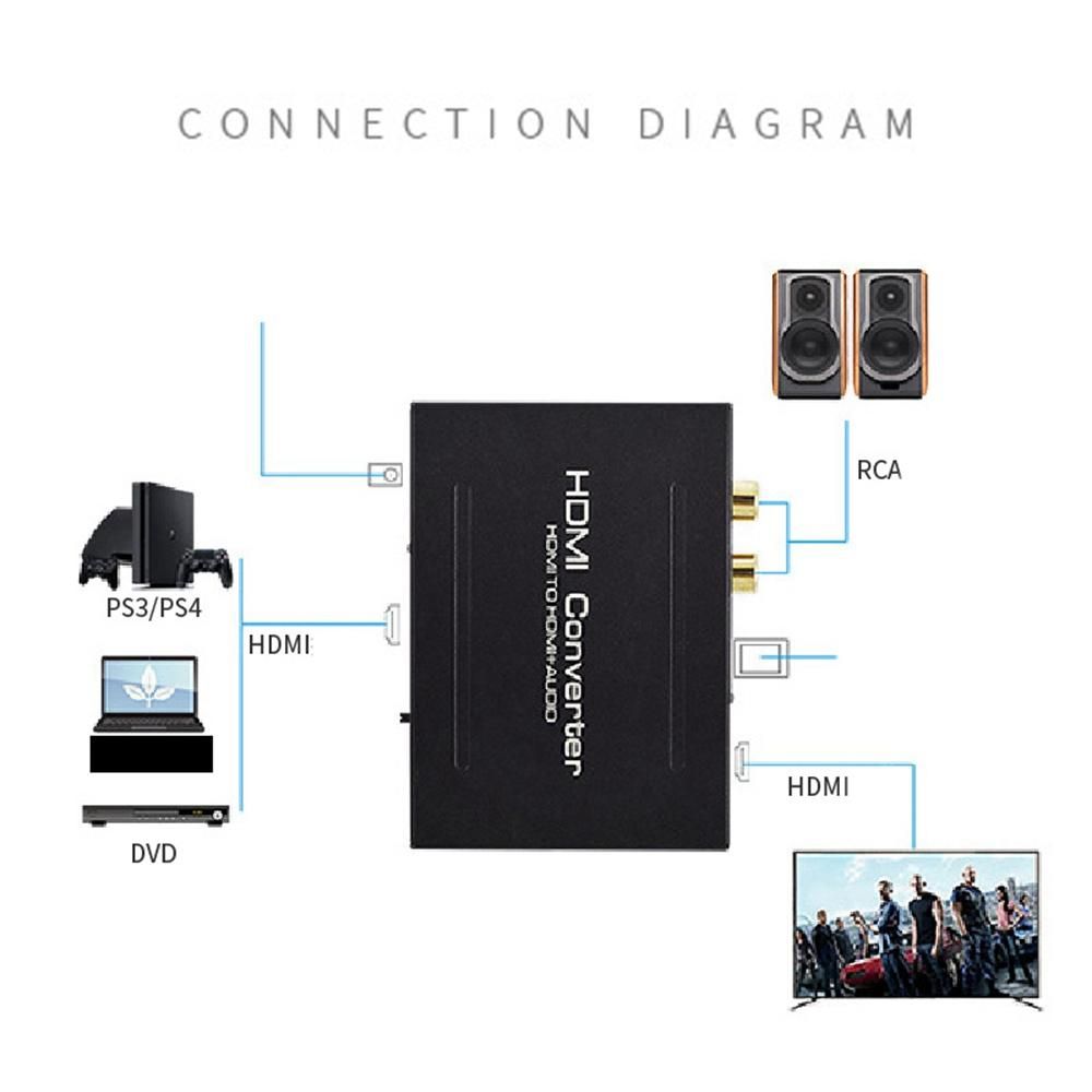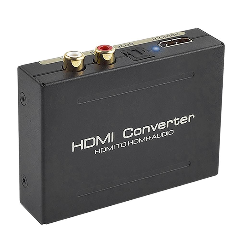 Convert HDMI input to one HDMI-Compatible output, one optical audio output and one R/L analog audio output