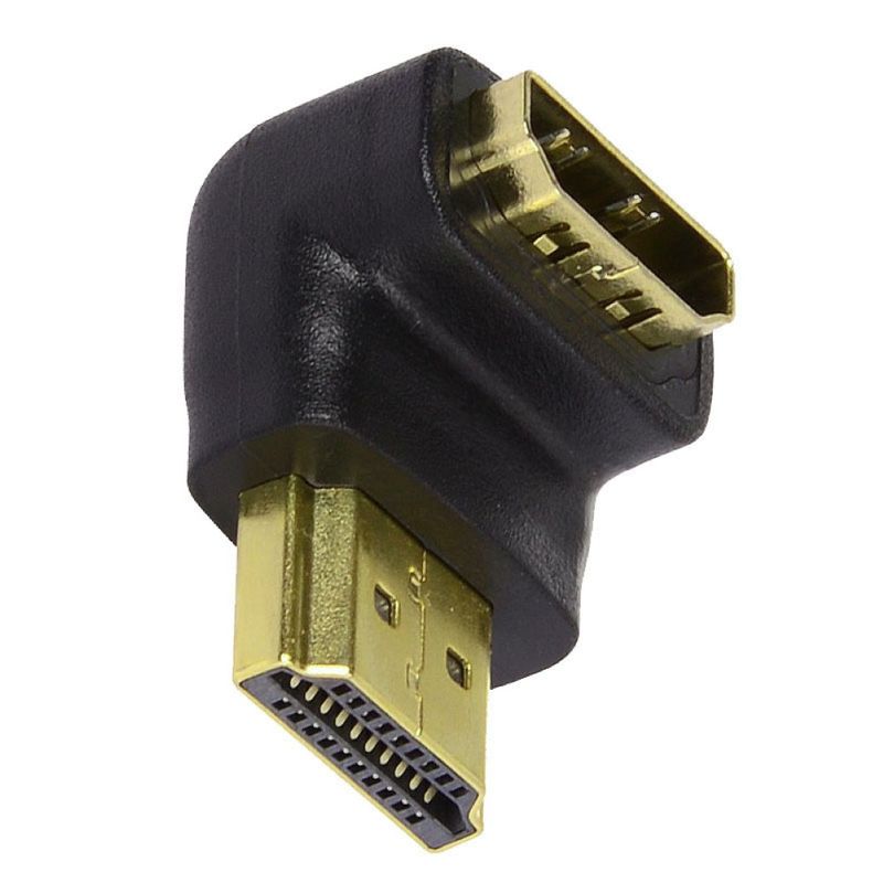 This HDMI-compatible A male to HDMI-compatible A female adaptor with 90 degree angle, can be used to connect HDMI-compatible cables to HDMI-compatible devices when the space between HDMI-compatible device and wall is narrow.