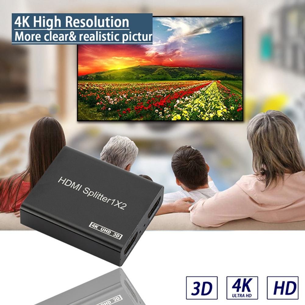 HDMI distributor 1-in-2 output: 4K HDMI distributor can distribute one HDMI 4K 30Hz input signal to two HDMI displays and transmit video and audio simultaneously without loss and delay (Note: only copy / mirror the screen without expansion).