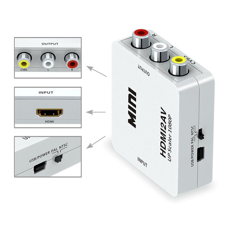 1X HDMI-Compatible TO AV Scaler Adapter HD Video Composite Converter Box HD toA AV/CVSB L/R Video 1080P Support NTSC PAL