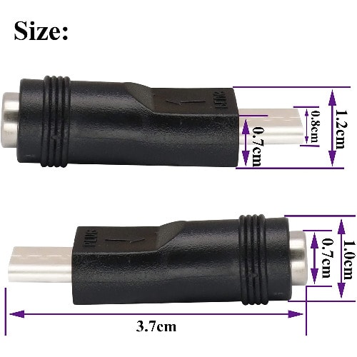C TyPE connectorBrand New and High QualityDC Power 5.5x2.1mm Female Jack to USB-C Male Plug AdapterColor: Black+SilverOutside Diameter: 5.5mm/0.22Inside Diameter: 2.1mm/0.083Length 40mm