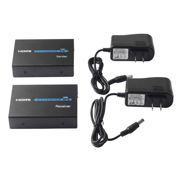 2. The 120m HDMI extender use single cat5 or cat-6(recommended) cables up to 120 metres. HDMI extender over cat5/cat6 is designed to convert HDMI signal to standard TCP/IP and transmit by internet cable or Lan. With the advantage of TCP/IP standard, it can transmit HDMI signal source from HD STB, DVD, PS3, HDMI display etc to HD projector, DLP, LCD, LED and other audio visual equipment