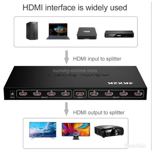 2. Simultaneously distribute 1 HDMI signal source to 8 HDMI displays