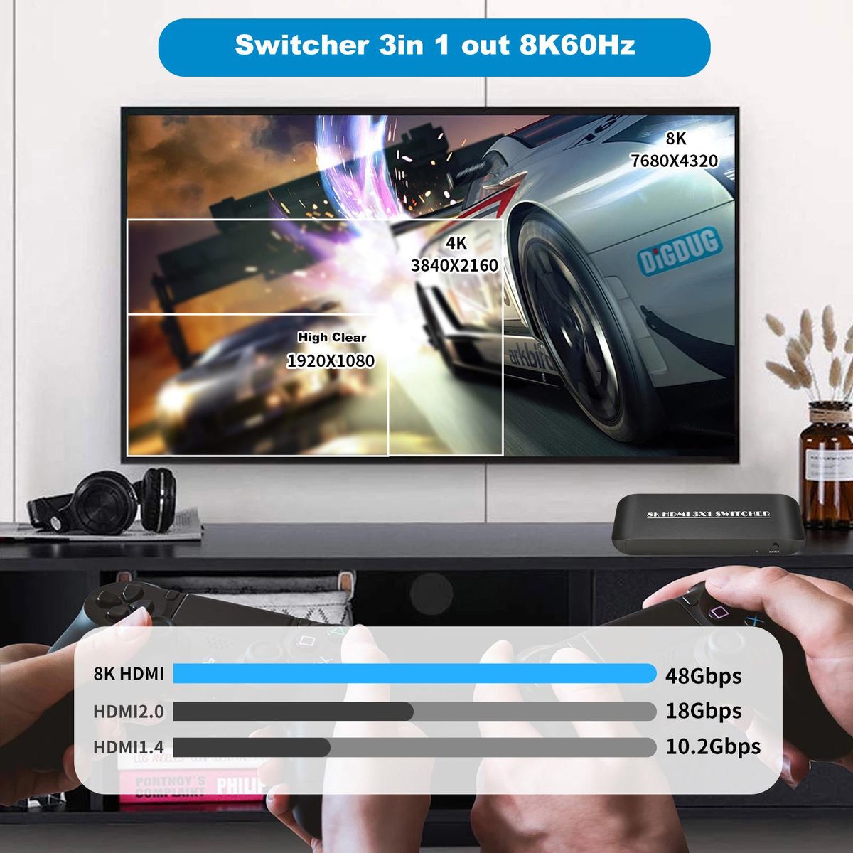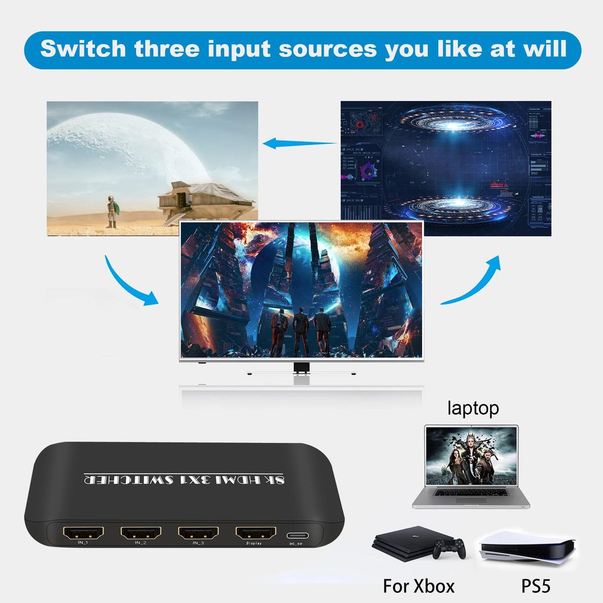 Buy HDMI Switcher 8K 3 in 1 Out HDMI 2.1 Switcher 3 Port with IR Remote Support 8K 60Hz 4K 120Hz HDCP 2.3 for Xbox PS4 PS5 UHD TV Monitor Projector with Wire-Desktop Controller in Nigeria