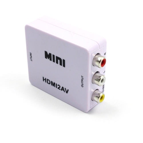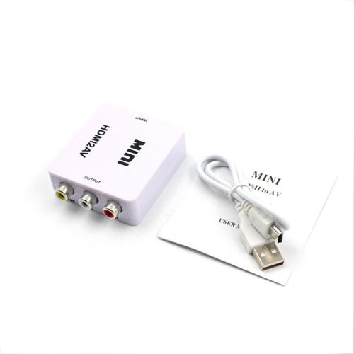 HDMI to AV Converter Box HDMI to RCA AV/CVSB L/R 1080P Video HDMI2AV Converter Support NTSC PAL Output HDMI to AV Adapter This HDMI to composite A/V converter will give a standard Y/R/W RCA connection from any HDMI signal. Ideal for feeding a set top box or media device into an existing A/V distribution system for clubs or business, it is also useful for situations where you have existing A/V cables and no need to upgrade to a full HDMI signal path. Power supply included (USB cable). Features:new and high quality.Input: HDMI Type A femaleOutput : RCA Yellow/Red/White.HDMI input format: 480p / 576p / 720p / 1080i / 1080pA/V output format: PAL 576i or NTSC 480i selectablePlug and play, no driver needed.Size: 6cm x 5.5cm x 2cmPackage Included: 1 x HDMI to AV Adapter1 x USB Charge Cable1 x User Manual.