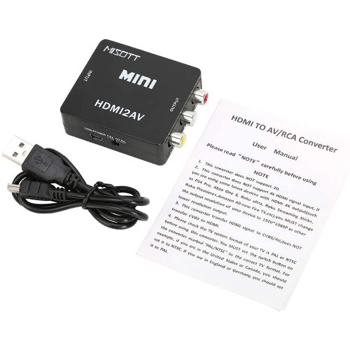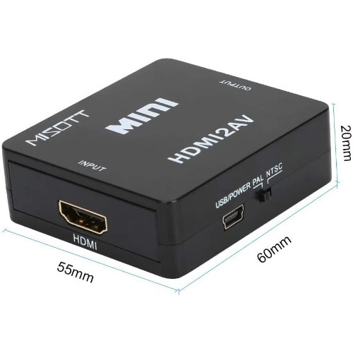 HDMI to AV Converter Box HDMI to RCA AV/CVSB L/R 1080P Video HDMI2AV Converter Support NTSC PAL Output HDMI to AV Adapter This HDMI to composite A/V converter will give a standard Y/R/W RCA connection from any HDMI signal. Ideal for feeding a set top box or media device into an existing A/V distribution system for clubs or business, it is also useful for situations where you have existing A/V cables and no need to upgrade to a full HDMI signal path. Power supply included (USB cable). Features:new and high quality.Input: HDMI Type A femaleOutput : RCA Yellow/Red/White.HDMI input format: 480p / 576p / 720p / 1080i / 1080pA/V output format: PAL 576i or NTSC 480i selectablePlug and play, no driver needed.Size: 6cm x 5.5cm x 2cmPackage Included: 1 x HDMI to AV Adapter1 x USB Charge Cable1 x User Manual.