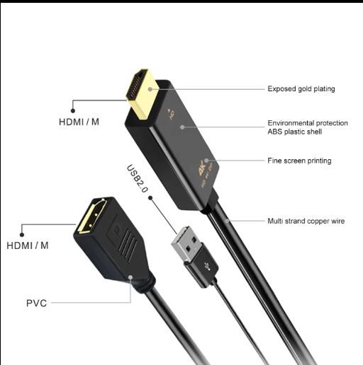 Connect to display devices such as TVs, projectors, monitors, etc. through this adapter cable, and then convert into DP