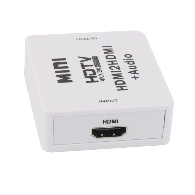 The MINI HDMI to HDMI AUDIO+ Audio converter increase the analog stereo audio output on the basis of the HDMI signal transmission. The analog stereo audio signal can be easily connected to the earphone or audio power amplifier.