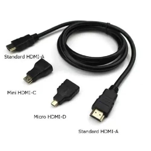 5.1.5m HDMI to HDMI Cable + HDMI to Mini HDMI Adaptor + HDMI to Micro HDMI Adaptor.