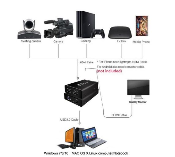 Contenido del paquete: 1 * captura de video USB 3,0 HDMI