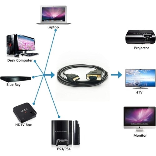PORTABLE HDMI TO VGA ADAPTER connects a computer, laptop, tablet or other device with HDMI to a monitor or projector with a VGA port; A VGA cable (sold separately) is required to connect from the adapter to a monitor or projector; Carry this lightweight adapter in your laptop bag for a business presentation from your computer or use it on the desktop to extend your screen to a monitor.