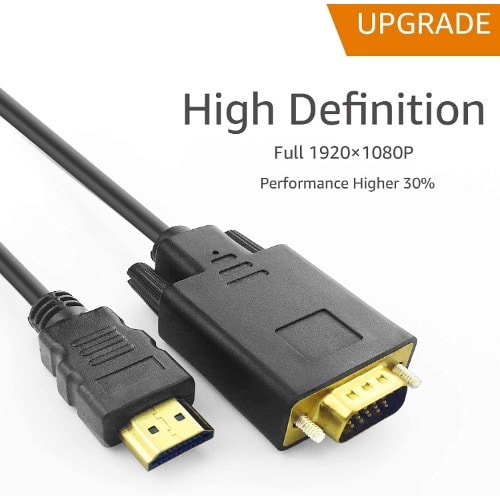 This HDMI to VGA Adapter, you can output graphics from any HDMI output to VGA display. The new built-in 1080P chip can convert the HDMI digital signal to VGA analog signal. Enables computers, desktops, laptops, tablets, and other HDMI male input device to be connected with computer monitor, or other display. It supports the high definition output of 720P or 1080P.Works with any device with an HDMI output.