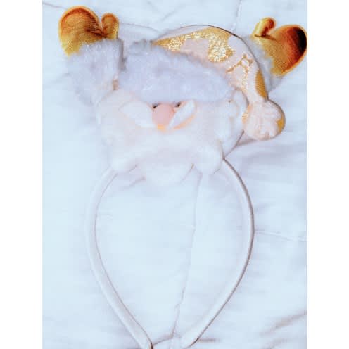 This Christmas Antler Hairband is the perfect addition to your wardrobe this season. It features brown sequined antlers with a gold bow on the left and green leaves on the right.