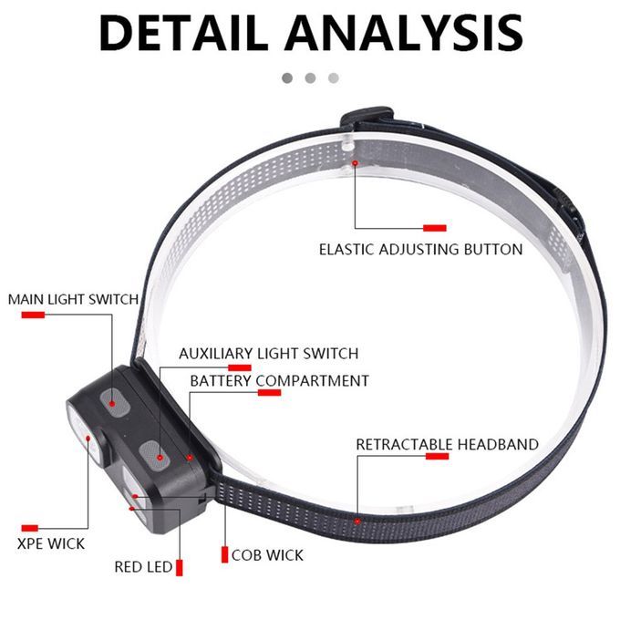 Des ription: This amping headlight is light in weight, easy to arry, adjustable, suitable for night lighting for various outdoor a tivities.