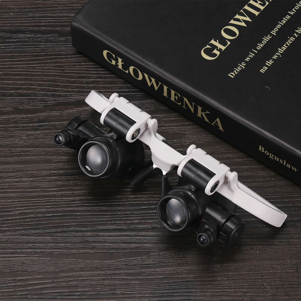1X Head-Mounted 8X 15X 23X LED Magnifier Double Eye Glasses Loupe Lens Jeweler Watch Repair Measurement With LED Lamp